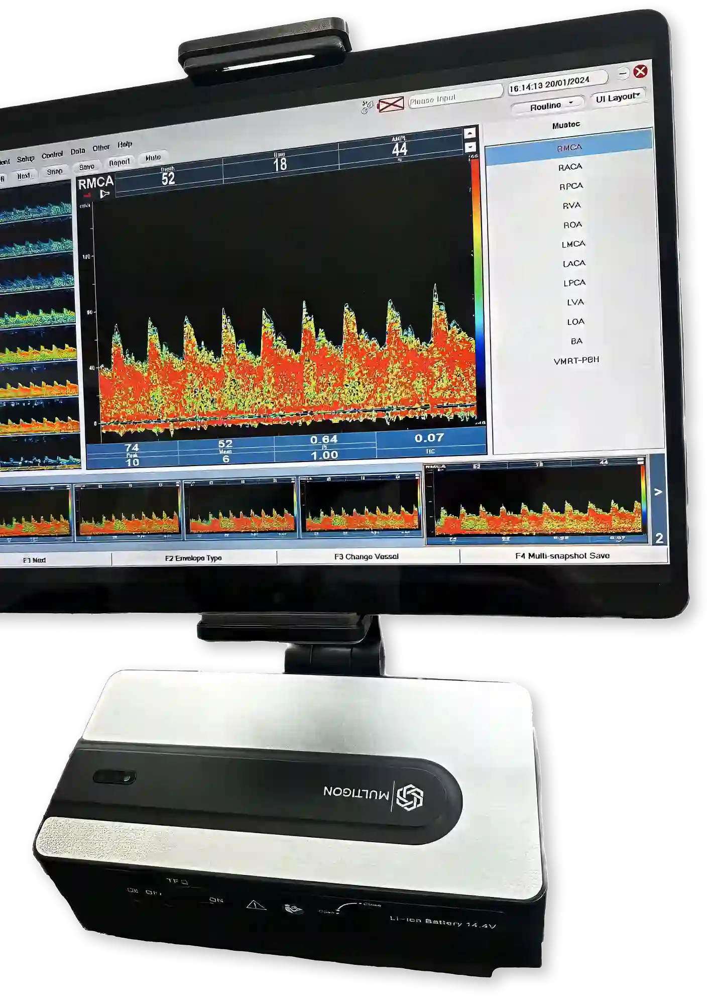 Multigon USA and Falck Medical Technologies has established a proven model of legitimate application in ophthalmology, to ensure TCD is only ordered when medically necessary. The Falck multifunction device is the only FDA cleared device that quantitates the mean central retinal artery (MCRAP) perfusion pressure or ophthalmodynamometry (ODM). A reduced MCRAP demonstrates focal ischemia which is most probably caused by proximal vascular disease. TCD is the most sensitive way to determine if stenosis exists in the large basal vessels of the Circle of Willis and the distal ICA's.